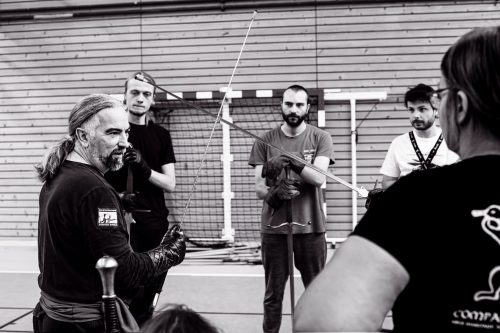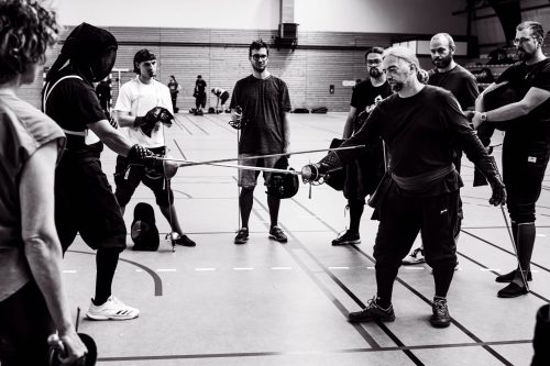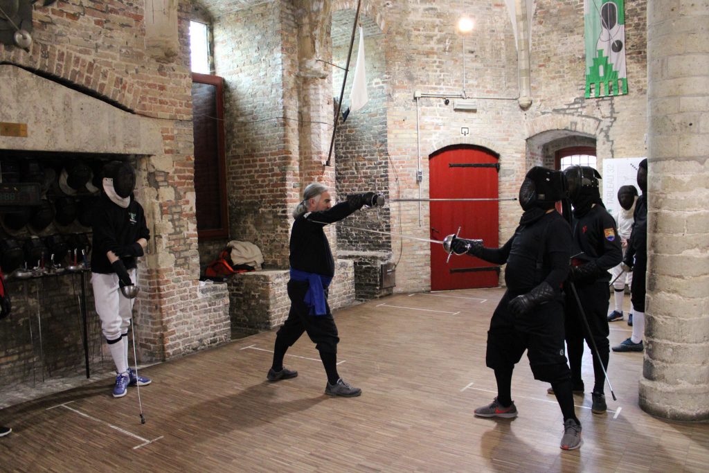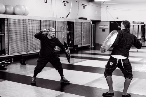 Au fil du temps, le groupe s’ est étoffé et le nombre de participants, surtout pour la rapière, ayant dépassé ce que notre petite salle pouvait contenir, un deuxième jour fût ouvert pour mieux accueillir les débutants.