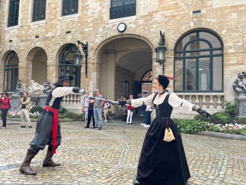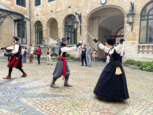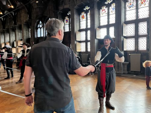 Depuis quelques années, nous participons à des évènements liés à l’ époque de la renaissance pour promouvoir notre art du maniement de la rapière, mais pas uniquement, la Verdadera Destreza étant plus un art du mouvement qu’ une recette à appliquer à un type d’ épée.